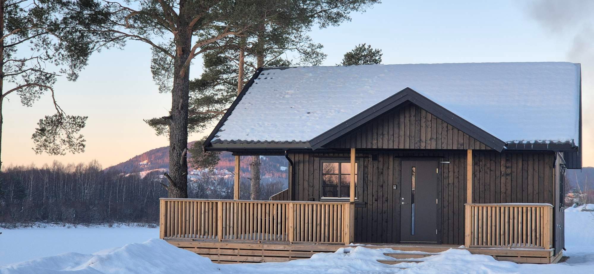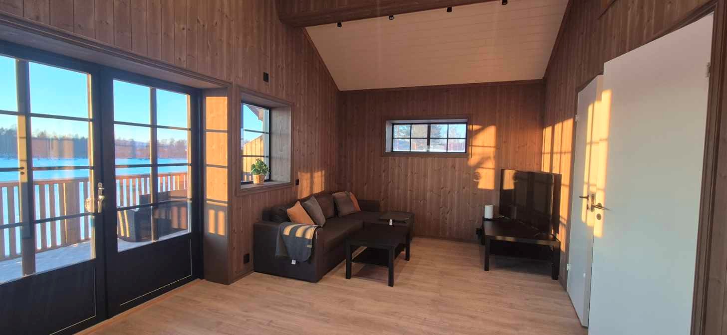 Hyttene har en fin solrik beliggenhet åpent i landskapet med flott utsikt til Glomma elven med bryggeanlegg sandstrand for sommeropplevelse.
