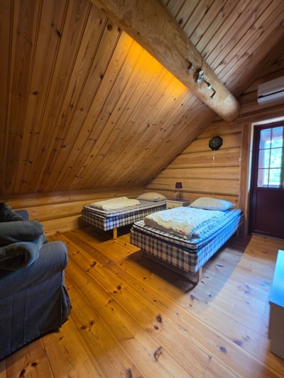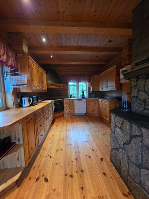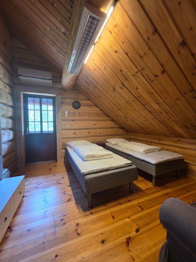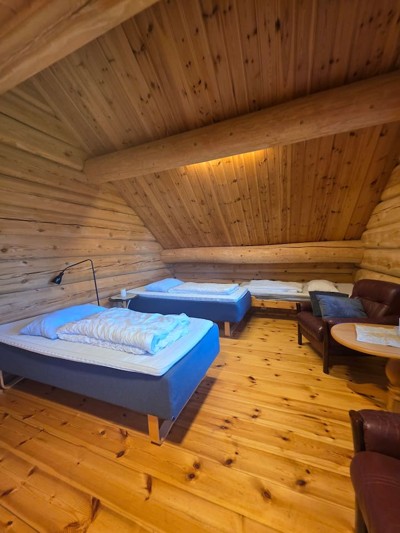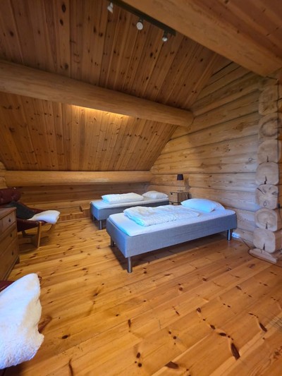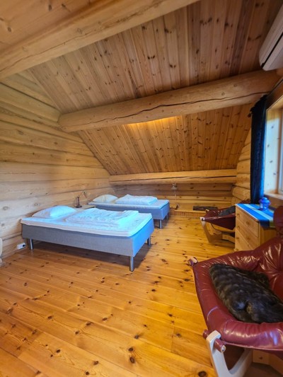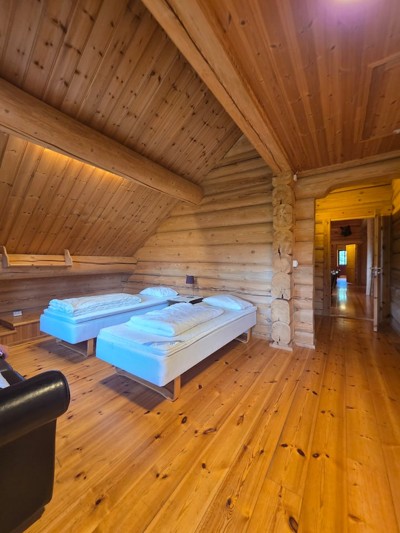 I tillegg 4 av soverommene er innredet med egne hems slik at total sengekapasitet for 20 personer i storhytten.