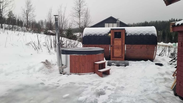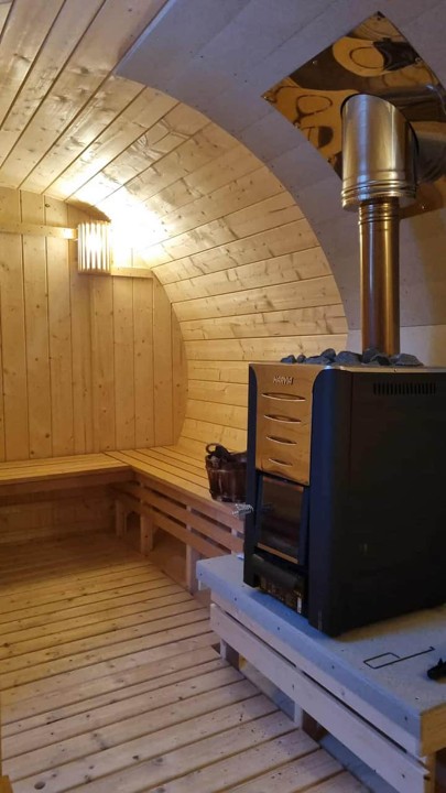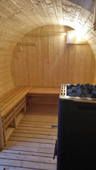 Fra ca 1. desember vil storhytten få badstu sauna og badestamp for spa velvære til gjestene.