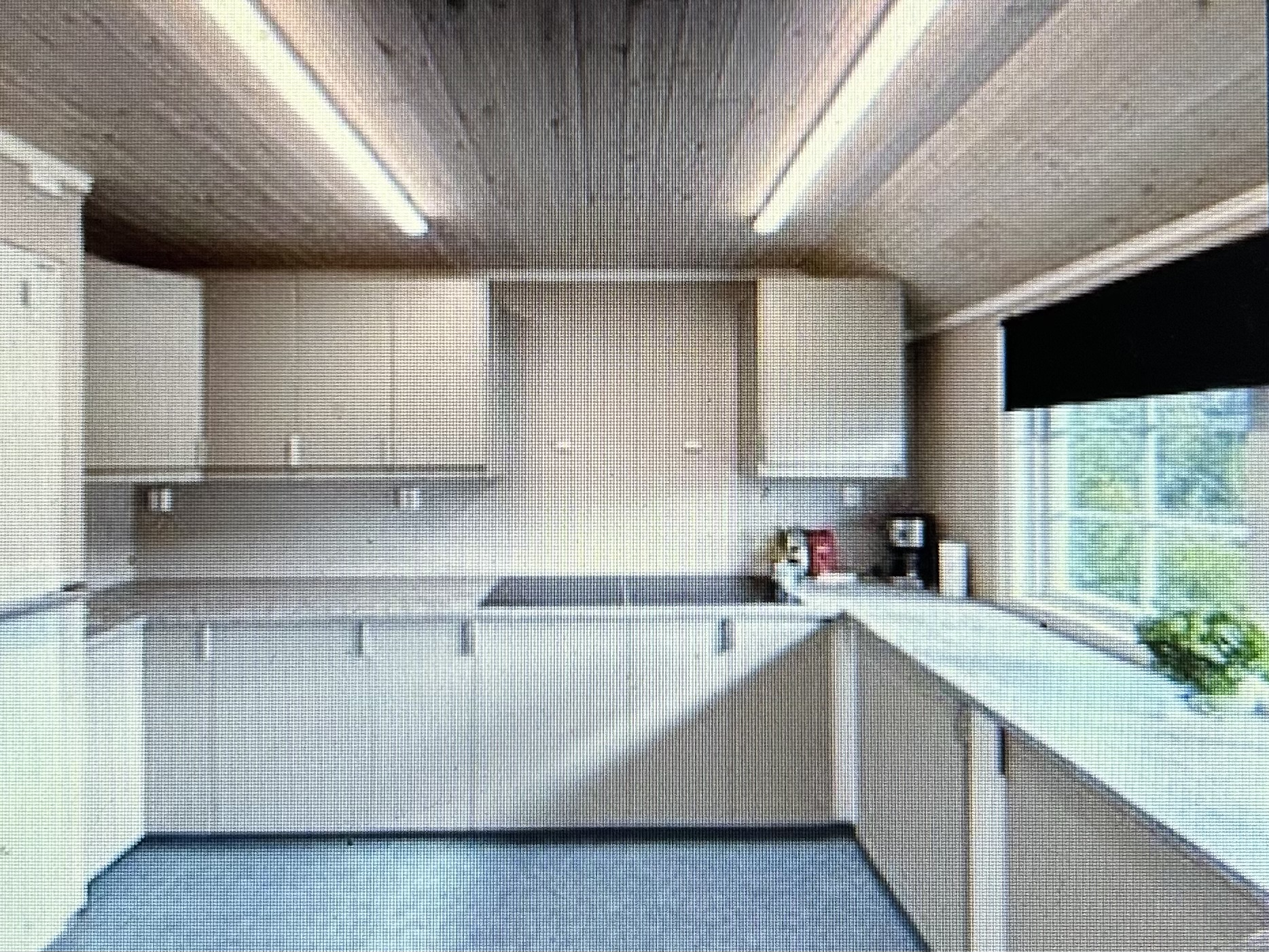 Tømmerhytten storhytte i historisk stil med kurslokale langbord og storskjerm TV for pc tilkopling